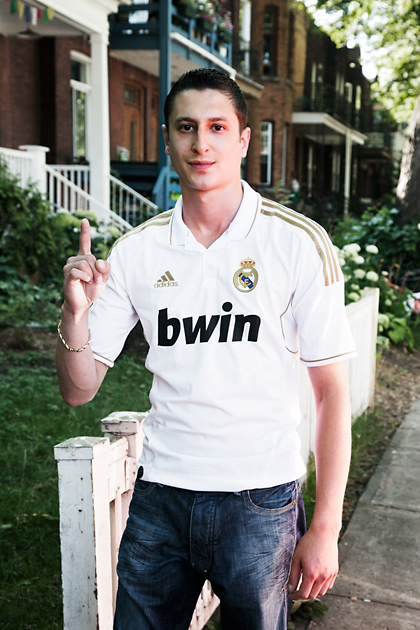 I met Kianoosh just around the block after I left my house, a perfect scenario, before I got lost in the city. Just like Tania, the other Real Madrid footballista, he really wanted to show how confident he is about the club he supports. He held the index finger upright on every single photo I took of him, which cuts my editing time significantly. I am not sure Kianoosh, a born Montrealer, will be as confident at the end of the coming season but his natural optimism, and his favourite team’ shirt, suit him really well.