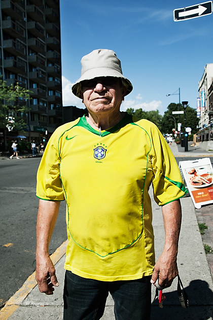 When I spotted a Brazilian shirt coming down the street I briefly debated if I should include in this series the people wearing a national team shirt. But Mr. Moreira was too good looking to let him pass by. I stopped him as he walked by me with his family. Our brief conversation revealed that Mr. Moreira lives in Montreal “at the moment”.