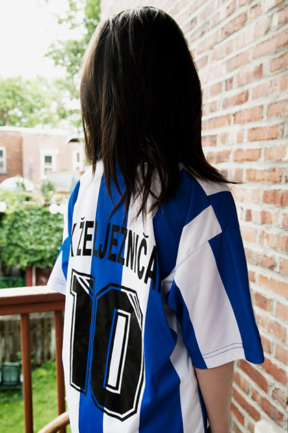 I can’t fit into this shirt anymore, but I doubt I’ll ever meet anyone else walking one of these in Montreal, so I asked my daughter if she would wear it, for the camera. She kindly agreed. Back in the old days when I lived in Sarajevo I could see Željezničar‘s stadium Grbavica from my room. Up there from the 15th floor window, every second Sunday and occasionally on European Wednesday’s game, I could watch fans overtaking the streets and walking to the gates. It is a quite a different view now, here in Montreal.