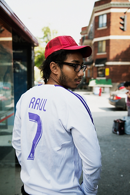 Juan was waiting for a bus, all crouched on the bench within the bus-stop glass enclosure, when I approached him. He was very kind and stepped outside so I can take a picture. This is the first long sleeves shirt I encountered, which reminded me that soon the jerseys will be hidden under sweaters and jackets. How do I work around that little problem since moving to the Southern Hemisphere, to Seychelles maybe, is not an option? Juan is from Seychelles. He went back for a visit last year and he bought the jersey there. Real Madrid seems to be doing something right when it comes to propaganda, so far I encountered their jerseys more than any others. This one, at least, had Raul written on his back, not that other guy.