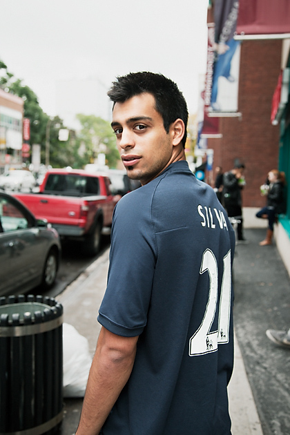 I was watching Sean from the other side of the street as he was about to walk into McDonalds. Thankfully he changed his mind and started walking down St. Catherine. I ran across and caught him as he was crossing Guy. Sean Silva was born in Montreal. His parents come from India and Portugal. His favourite player is David Silva and he likes Manchester City because of their motivation and determination to go to the top right away. That is exactly why many others don’t like Manchester City. But David Silva is a great player, no one can deny. Sean also plays football, triple A (AAA) level. North Americans understand the code. To clarify for others, this means Sean is a very good player too.