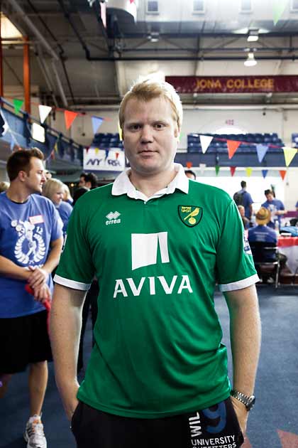 At the same event where I met Dan, I saw Christian as he was pulling a blue shirt over his jersey. He was kind enough to reverse the action so I can photograph him. He came to the New York City 6 years ago but his passion for the home team does not diminish with time. He told me how Holt is the heartbeat of his team. Yesterday, inevitably, as Norwich City was trashed by Fulham in the season opener, I was thinking of Christian. For those interested in stats, Holt ‘the heartbeat’ played 76min and managed to commit one foul.